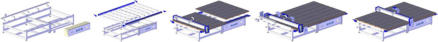 INNOVATIVE DESIGN A totally innovative design approach reclassifies the state of the art industry, enabling the creation of modular machines made up totally of components employing CAD-CAM technology. The VETROMAC Team controls all the construction phases directly; concept design, 3D design, mechanical machining of individual details by CNC machining centres, assembling and testing of machines, are all totally in-house processes. All this with obvious advantages: Strict quality control. Absolute uniformity and repeatability with the possibility of interchanging any component (including the cloth panel) without any need for any adjustments. Cutting speed ​​and precision never seen before; similar and sometimes even higher than expensive machines with linear motors. Very low wear due to a mechanically perfect construction. Possibility to upgrade machines previously built with the addition of the latest developments, up to the possibility of changing the size of the machine itself.